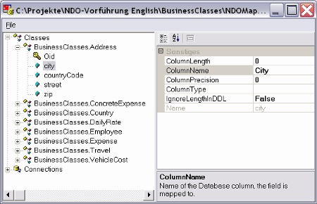 When an assembly is compiled, the enhancer creates a mapping file that contains suggestions for mapping entries according to a specific naming convention. This file can be easily adapted by the developer to the actual circumstances of the target database.